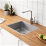 Actualiza tu cocina con este el fregadero simple. Su diseño permite instalarlo como tú prefieras: oculto bajo la cubierta o sobrepuesto para una instalación clásica y rápida. Incluye almohadillas de aislamiento acústico.