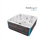 • 43 Jets con acabados de acero inoxidable: 1 surtidor giratorio doble XL, 2 jets giratorios individuales XL, 1 jet direccional XL, 6 jets giratorios individuales estándar, 2 jets direccionales estándar y 31 jets direccionales Precision®.